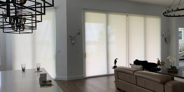 Limited Time Offer: Up to 6 (Six) windows, including 1 Sliding door covered with Solar Screen 1% motorized Roller Shade for Only $2,800, Save $700 from List price.(Exclude any oversized window or sliding door). Additional roller shades priced at 20% discount from List price. One Offer per Household. Ask Us about Automation for your shades or Drapes!